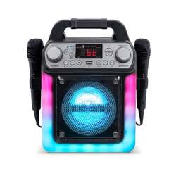 The Groove Mini combines your favourite Classic features with updated vocal-changing fun! Up your singing game with 6 fun voice-changing effects. Enjoy a light show that synchronizes to your voice. Connect your Bluetooth device and sing along to your favourite karaoke songs. Take this portable machine with you on your next road trip, tailgate, or pool party: simply add 6 ????size batteries (batteries not included). Did anyone say Karaoke Party? Connect the Groove Mini to your TV via HDMI cable and share your CDG+G (via USB drive, not included) lyrics on the big screen. Create fun, lasting, singable moments with The Groove Mini!