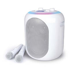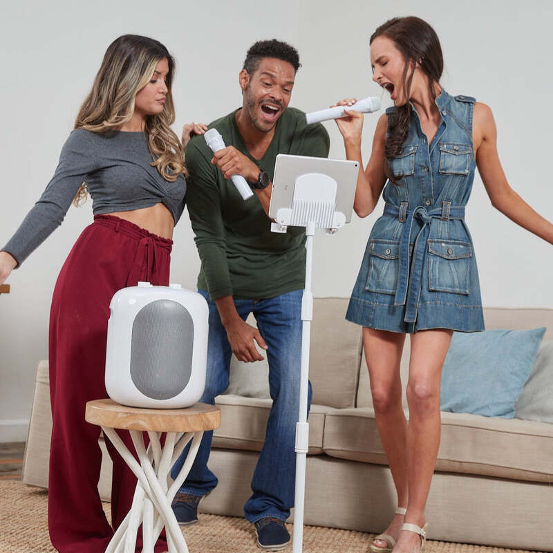 The Singing Machine Home Stage Karaoke is the first-ever home singing system to include our patented Vocal Hero technology. Experience professionally crafted vocal effects that take your performance to the next level with powerful tools like pitch correction and harmonizing effects. Crank up your newly discovered voice on a booming 50 Watt system that includes a rechargeable battery for hours of fun. Two included wireless mics give you the capability to have a completely wireless singing experience. Set it up as a one-piece system or separate the main unit from the mic stand for a custom setup to fit your room. The adjustable mic stand even includes a secure device holder for a phone or tablet to make it easy to read lyrics. Record your performance and play it back on the included internal memory. Get ready to discover the incredible voice you never knew you had with the Singing Machine Home Stage!