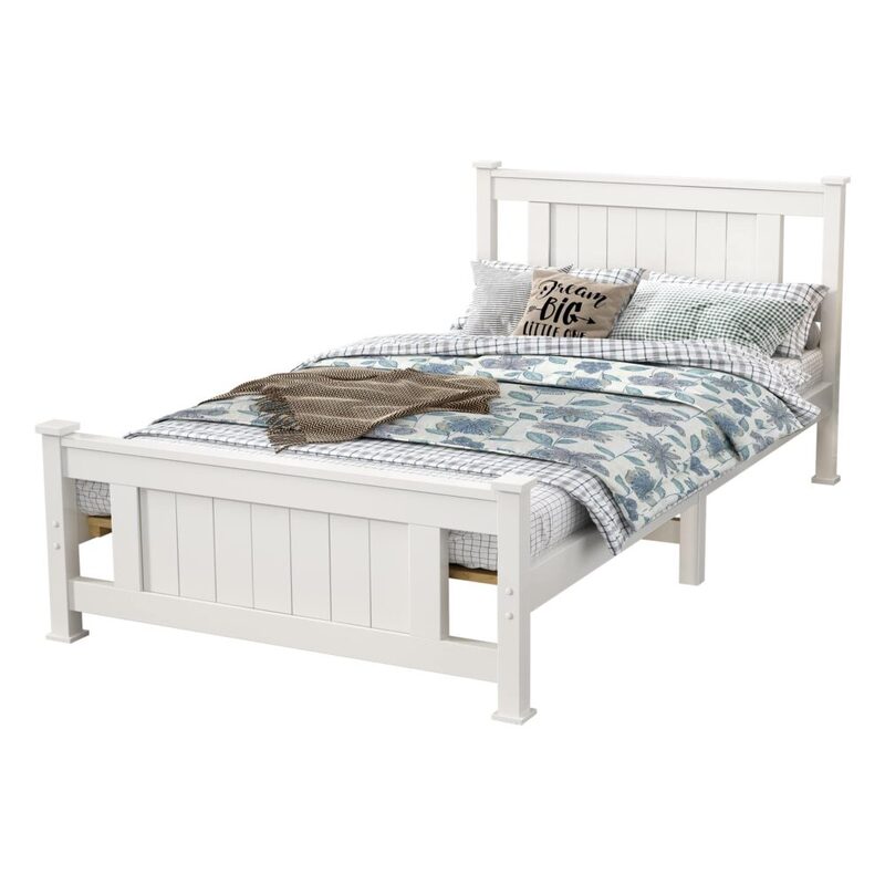 Single Solid Pine Timber Bed Frame-White