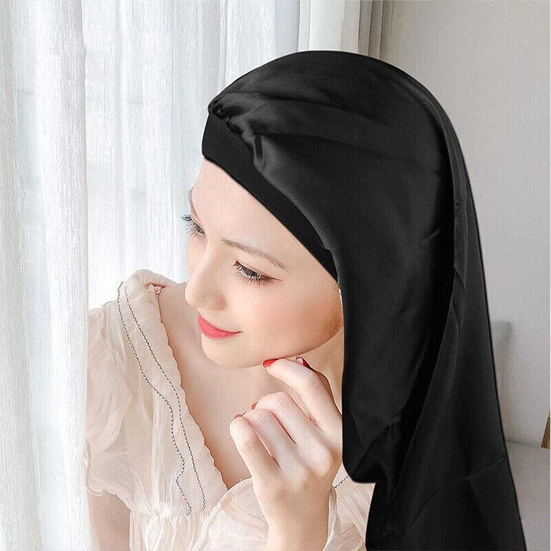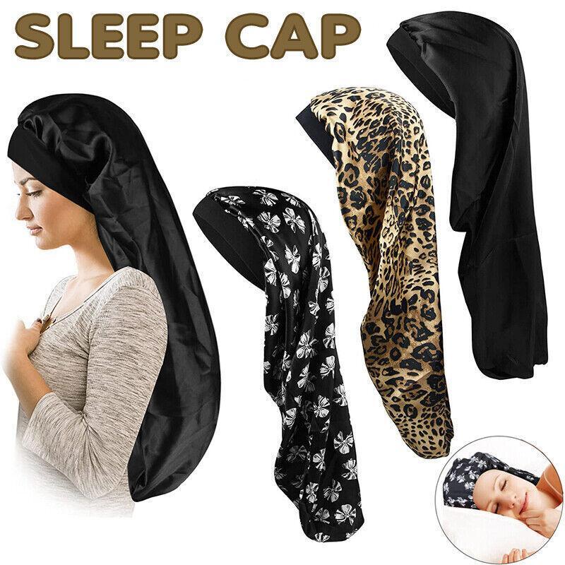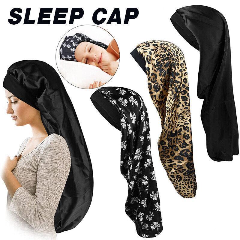 Sleep Cap Satin Silk Bonnet Wrap Hat Headwear Hair Sock Long Head Cover Turban
