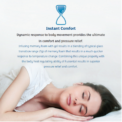 The gel particles in our pillow offer two incredible benefits - they balance the temperature of the pillow, keeping your body cool while you sleep, and they come together under pressure, offering greater support where it's needed the most. Fusion Gel responds to every pressure point with the correct amount of compression and support, preventing bottoming out in high-load areas. This ensures that you won't have to deal with excessive stiffness or aches and pains after a long sleep.