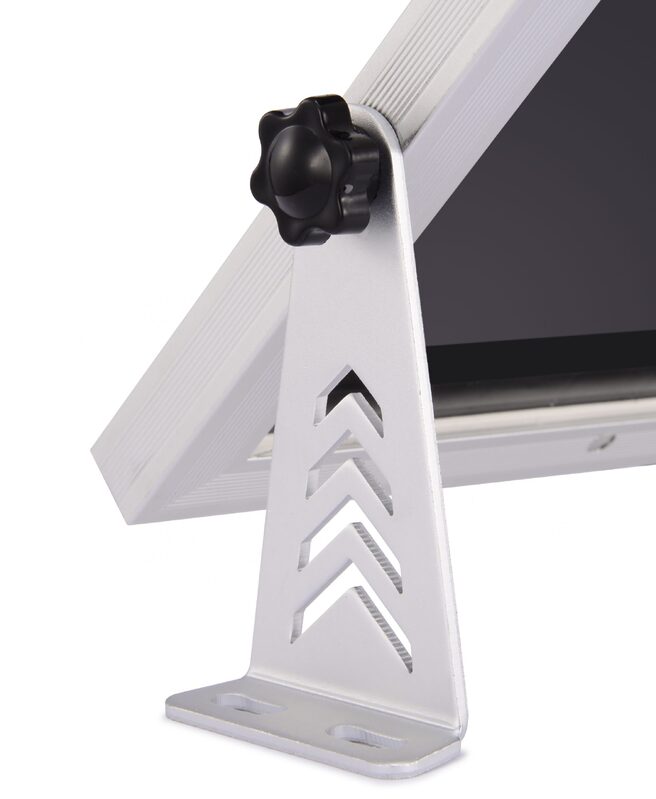 - Adjustable mounting bracket for solar panel and lighting fixture.