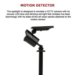 The Randy & Travis solar spotlight combines both form and function with its sleek LED design and security-enhancing properties. The spotlight is designed to emulate a CCTV camera with its circular LED lens and blinking red light that imitates live-feed technology. Such a design means that, even when the spotlight isn't in operation, the easy-to-mount structure serves as a deterrent against criminal activity on-and-around your property. That way, you can guarantee the personal safety of you and your home.