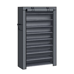 SONGMICS 10-Tier Shoe Rack Storage Cabinet with Dustproof Cover Gray