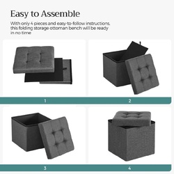 SONGMICS 38cm Folding Storage Ottoman Bench Foot Rest Stool Dark Gray