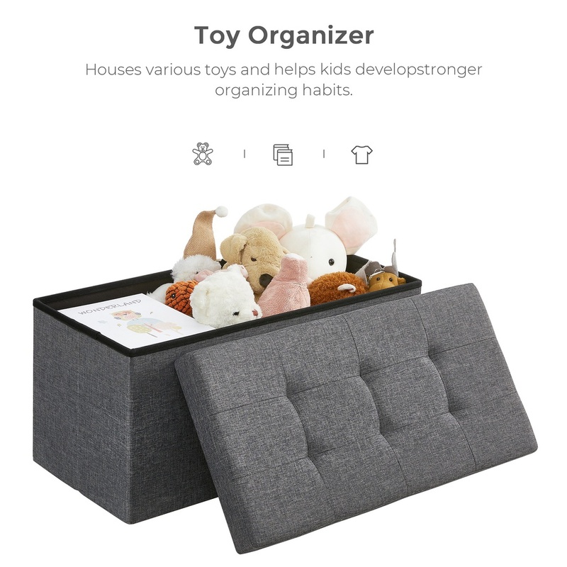 SONGMICS 76cm Folding Storage Ottoman Bench Foot Rest Stool Dark Gray