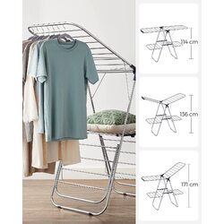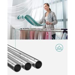 Stop wasting your time and energy on putting your wet clothes one by one on hangers to dry them! With this clothes drying rack, you can just hang your wet clothes on its hanging rails, which is a lot less hassle than using hangers. Congrats, your laundry day will be a breeze from now on!