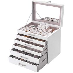 SONGMICS Jewellery White Box with 6 Layers and 5 Drawers