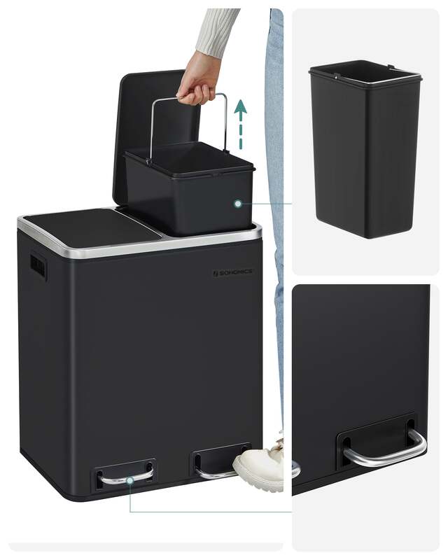 Bucket in Bin: 2 removable inner buckets with convenient handles are included, so you can lift them out and clean easily if your garbage bag accidentally breaks and spills