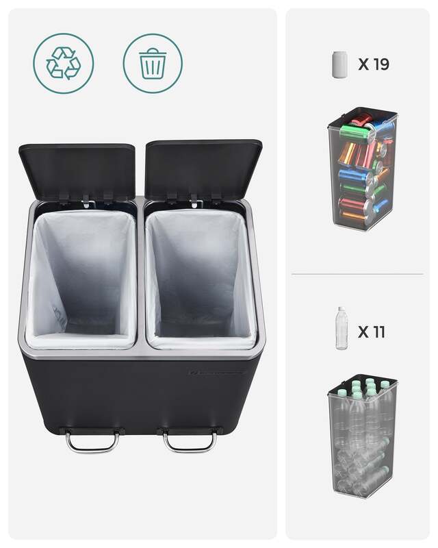 What You Get: A modern rubbish bin with 2 x 15L compartments, so you can easily sort the garbage for recycling and have a clean home