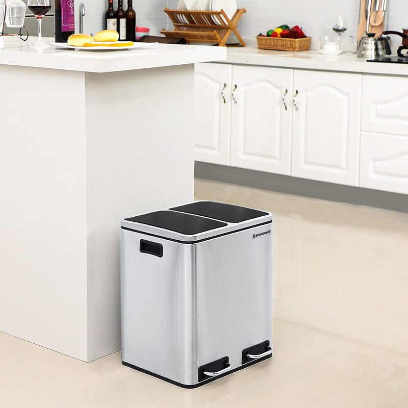[Delights Small Kitchens] With two 15L compartments, this trash can fits perfectly in compact kitchens, apartments, or smaller homes and helps manage recycling and trash in one convenient receptacle