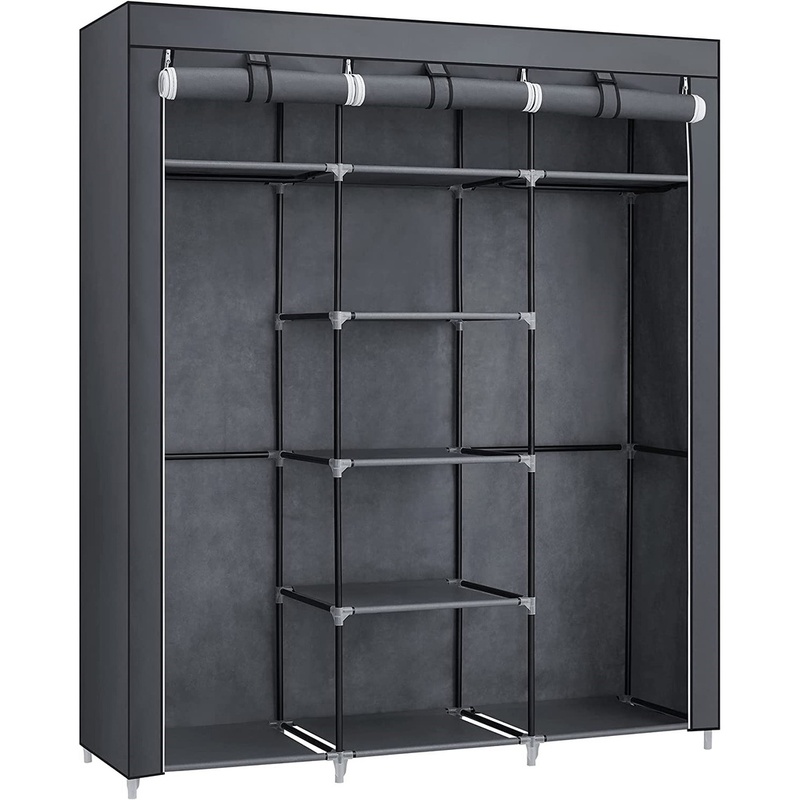 SONGMICS Wardrobe Bedroom Cupboard Clothes Storage Organiser Gray
