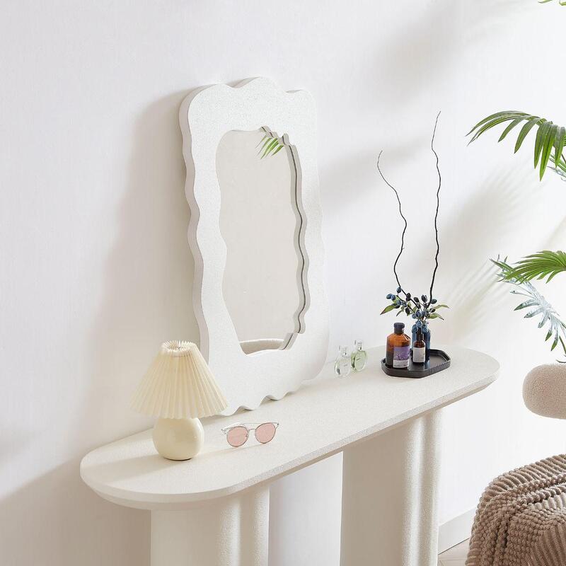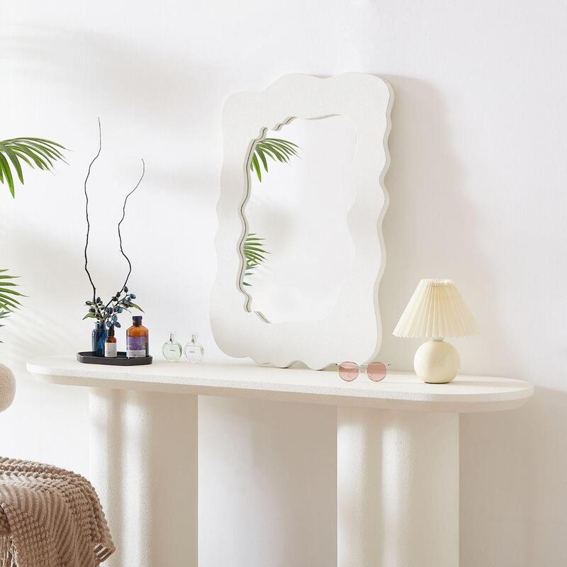 Textured TouchThe wavy shape and handpainted stucco finish of the Sorrento decorative mirror provide just the right amount of texture to your room to create interest without taking away from your curated aesthetic.