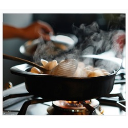 - Make sure no food is left in the pan after cooking in order to prevent it rusting.
