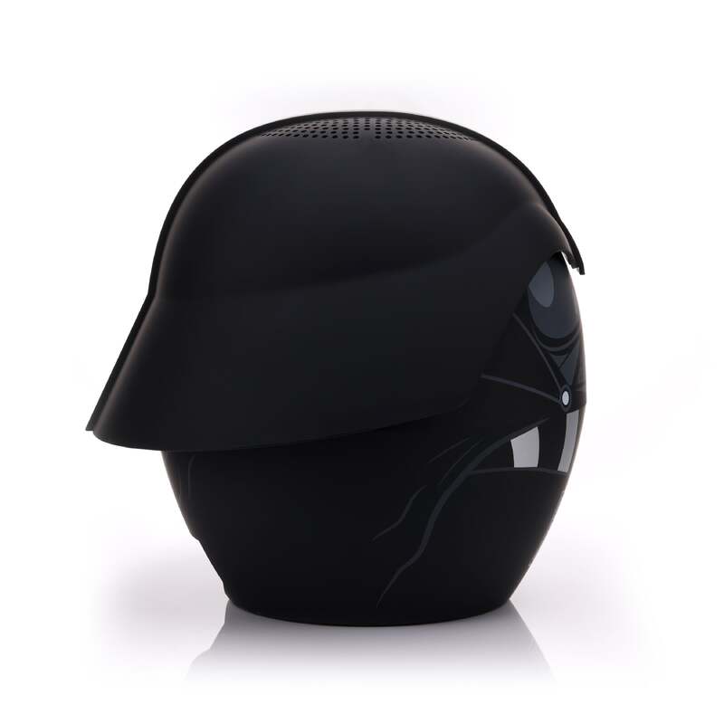 Star Wars Bigger Bitty Boomers Darth Vader 8" Bluetooth Speaker Live Bigger! Enjoy your music with the clear, rich, powerful sound of the Bigger Bitty Boomers Bluetooth speaker. This isn?? your typical boring speaker, toss one of these into any room and instantly add a bold (and totally cool) centrepiece. You can even pair two Bigger Bitty Boomers together to create a true stereo experience. Bigger sound requires some impressive power, and our built-in rechargeable battery delivers up to 8 hours of room-rocking wireless music play on a single charge. Easily connect to any Bluetooth-enabled device and start listening to your favourite playlist within seconds. Don?? have a Bluetooth device? That?? no problem, we??e included USB and micro-SD ports as other options to play your tunes.