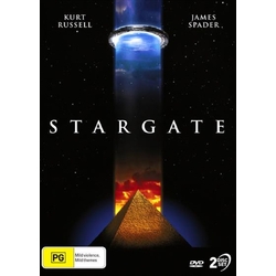 In 1928 an ancient Egyptian artefact covered in strange symbols is exacvated at the foot of the Great Pyramids. Decades later the American Government recruits the help of Egyptologist Dr Daniel Jackson (James Spader) to decode the secret of these symbols. He reveals the key to a Stargate, an intergalactic portal to the far side of the known universe. Jackson is joined by a crack military unit led by Colonel O'Neil (Kurt Russell) on a voyage of discovery. Through the stargate they find themselves in a futuristic desert world ruled by the godlike King Ra. Unwittingly Jackson has reopened a space/time corridor that the ancient Egyptians closed to this despotic ruler centuries ago. The band of explorers can only imagine the power that they have unleashed and the adventure that is about to unfold.