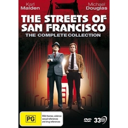 The crimes are vicious. The cases are baffling. And the scenery is bracingly authentic in the gritty drama that was shot on location in The Streets of San Francisco. With over two decades of experience, grizzled veteran cop Lt. Mike Stone (Karl Malden) knows these blocks like few others. When he's partnered with book-smart newcomer Inspector Steve Keller (Michael Douglas), it might seem like the two lawmen have nothing in common. Yet they share a passion for making sure no peretrator escapes the city limits. The thrills continue when Stone is joined by Keller's capable replacement, youthful Inspector Dan Robbins (Richard Hatch). Come for the view, and stay for the cases in this 33-disc Complete Series collection which also includes the never-before-released reunion TV Movie Back to The Streets of San Francisco.
