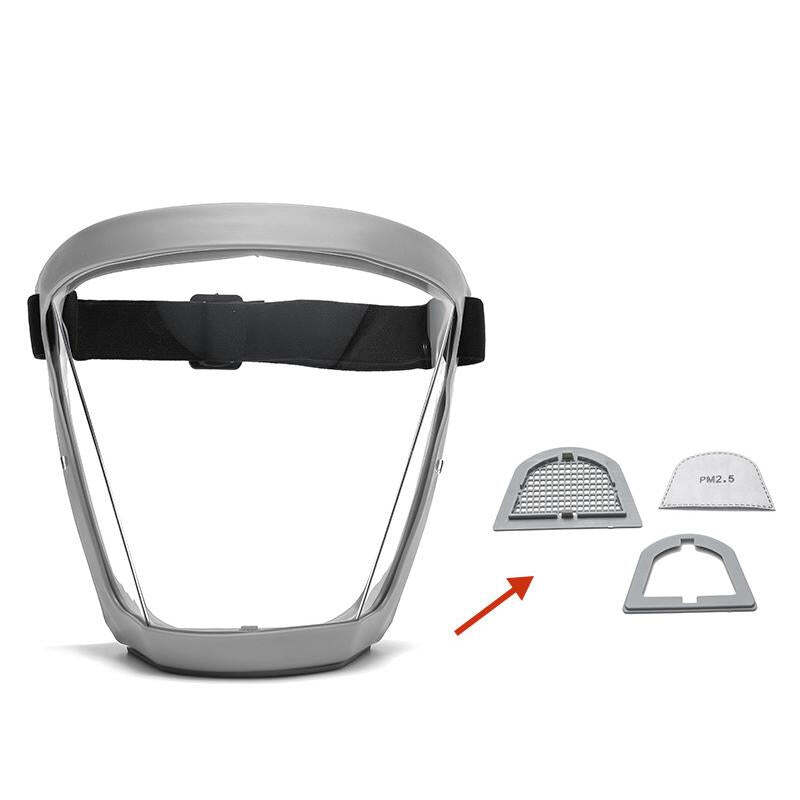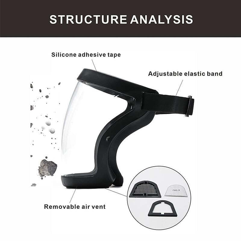 2.?Highdensity protective shell? Highdensity casing, While Covering the eyes, nose and mouth,which prevents chemicals, saliva droplets, and paints from splashing into the eyes. This protects your eyes and face well.