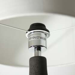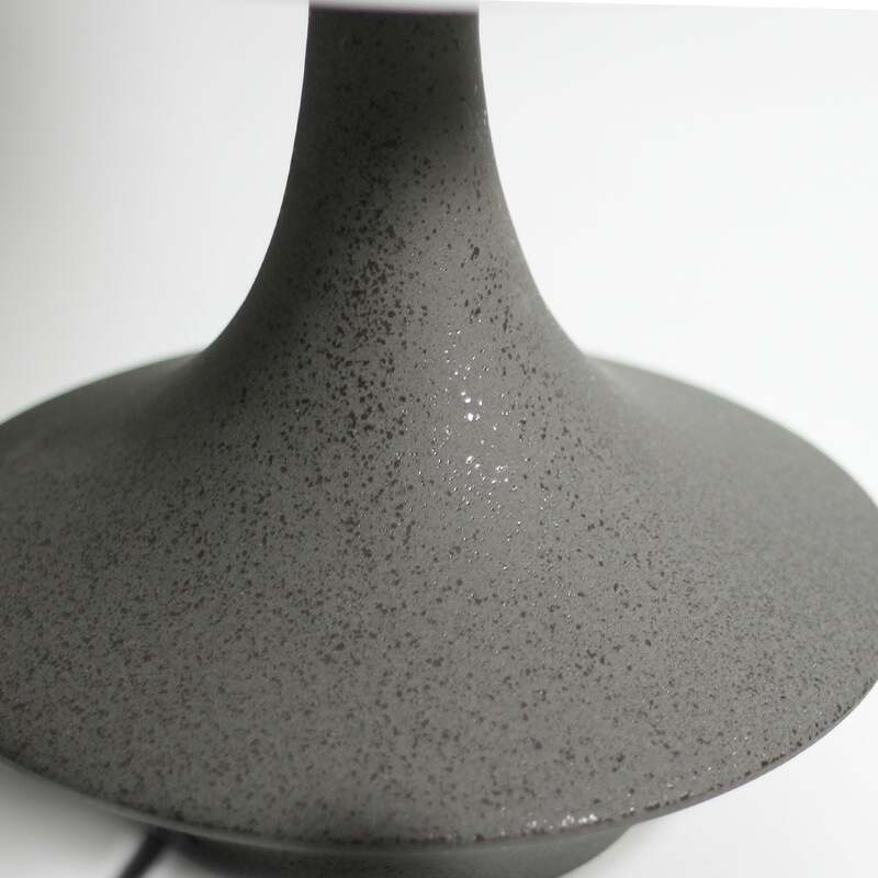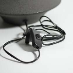 The sleek and curvy Symfonisk Desk Lamp oozes class and style, featuring a conical matte black ceramic base with a fine gloss fleck, supporting a white cylindrical white fabric lampshade that creates a modern noir aesthetic.