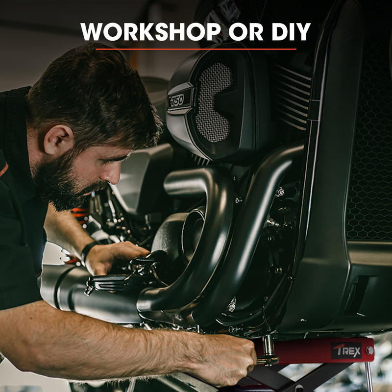 The T-Rex??strong> Motorcycle Scissor Jack is a heavy-duty professional-quality galvanised steel unit, with a huge 500kg lift-capacity that enables it to lift most motorcycles and quad bikes.