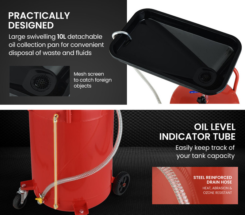 - 1 x 80L Mobile Waste Oil Drainer