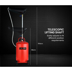 It features a large 10L detachable swiveling oil collection pan with a mesh screen to catch any foreign objects. A telescopic lifting shaft that easily adjusts in height from 98cm right up to 164cm. This allows the commercial-grade T-REX to be easily positioned under the car, as well as being suitable for use in a variety of other automotive workshop applications.