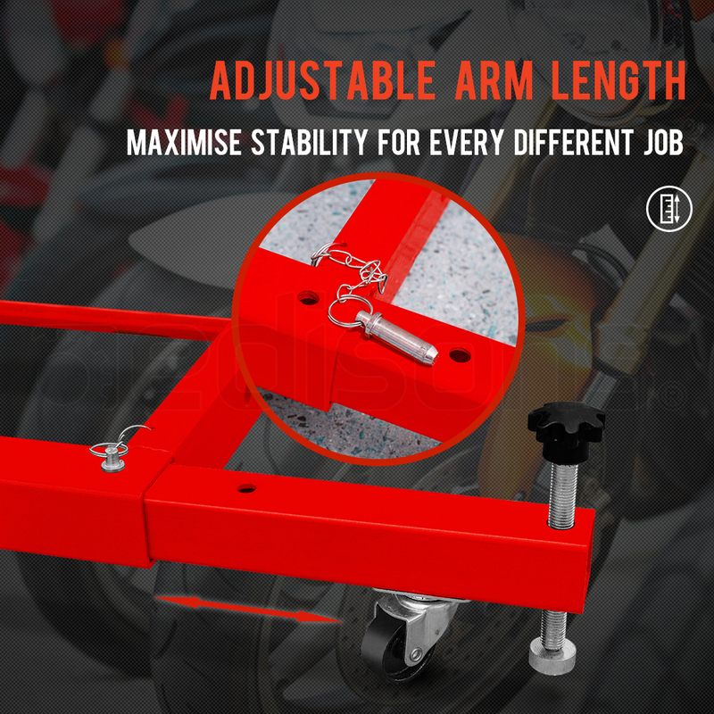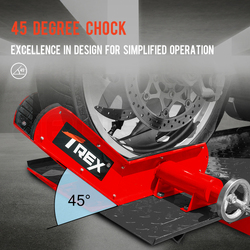 Providing a perfect working height of up to 815mm, the air-lift delivers a no-fuss auto maintenance experience saving you time and energy. It?? industrial strength powder coated steel frame, and heavy rated load capacity lend itself directly to commercial applications, but the T-REX air-lift is also widely used by DIY motorcycle enthusiasts, restorers and repairers in home garages all around Australia. The unit features an anti-drop safety mechanism, a fine adjustment tyre vice, grip strips for easy loading, arm length adjustment, four anchor points and dual friction brakes.