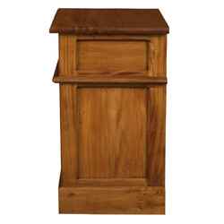 This Tasmania Bedside Table is a token of charm for any room. Its solid mahogany timber exudes a warm presence while the brass accents add a touch of romance. The single drawer and door open to reveal space that holds both dreams and necessities close to your slumber.