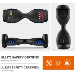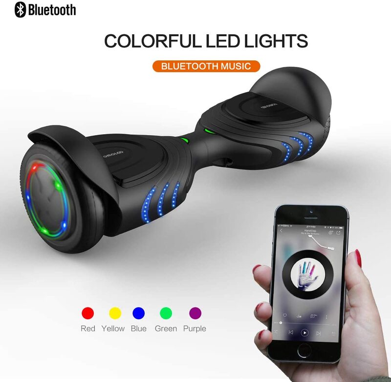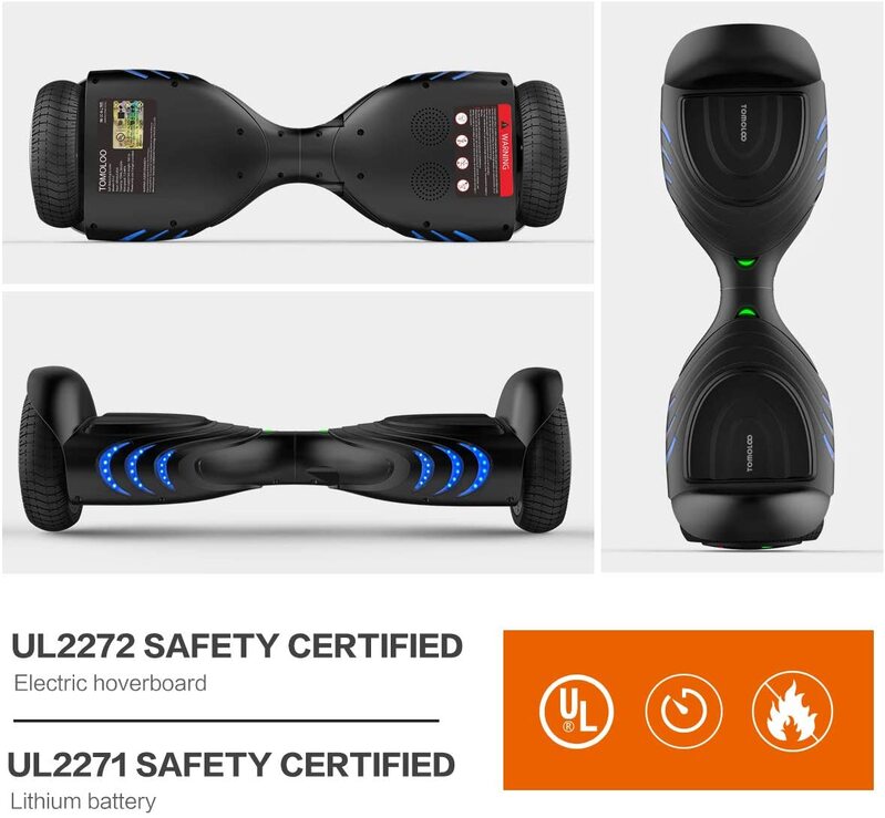 TOMOLOO UL Certified Hoverboard with Bluetooth Speaker and LED Lights Self Balancing Electric Hover Board Craft Skateboard Scooter Transporter Black