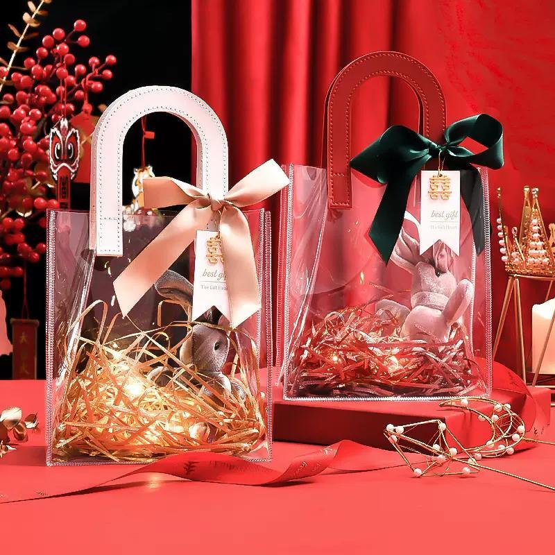 Transparent PVC Handheld Bags Transparent Gift Bag Handle Candy Containers Gifts