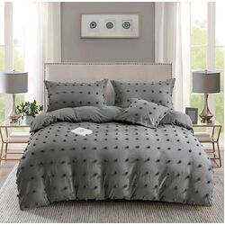 Tufted Dot Jacquard King Size Grey Duvet Quilt Cover Set