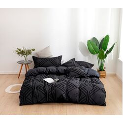 Tufted Textured Jacquard Queen Size Black Duvet Quilt Cover Set