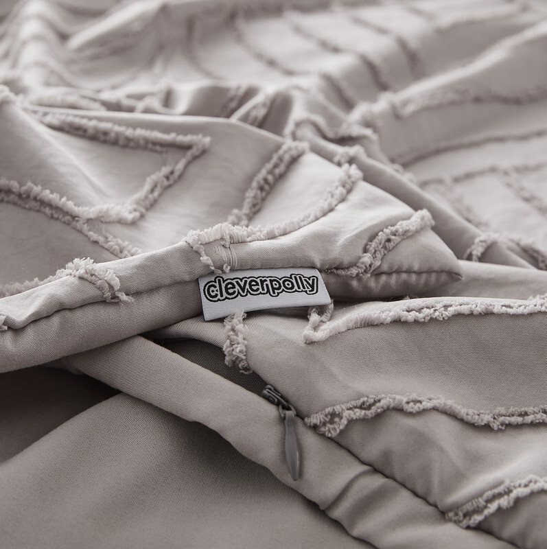 Front is tufted microfiber, reverse is brushed microfiber, Comes with 1 super king size quilt cover 270x240cm & 2 pillowcases 48x73cm,machine washable, zipper closure,