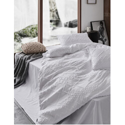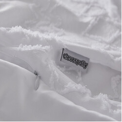 Front is tufted microfiber, reverse is brushed microfiber, Comes with 1 super king size quilt cover 270x240cm & 2 pillowcases 48x73cm,machine washable, zipper closure,