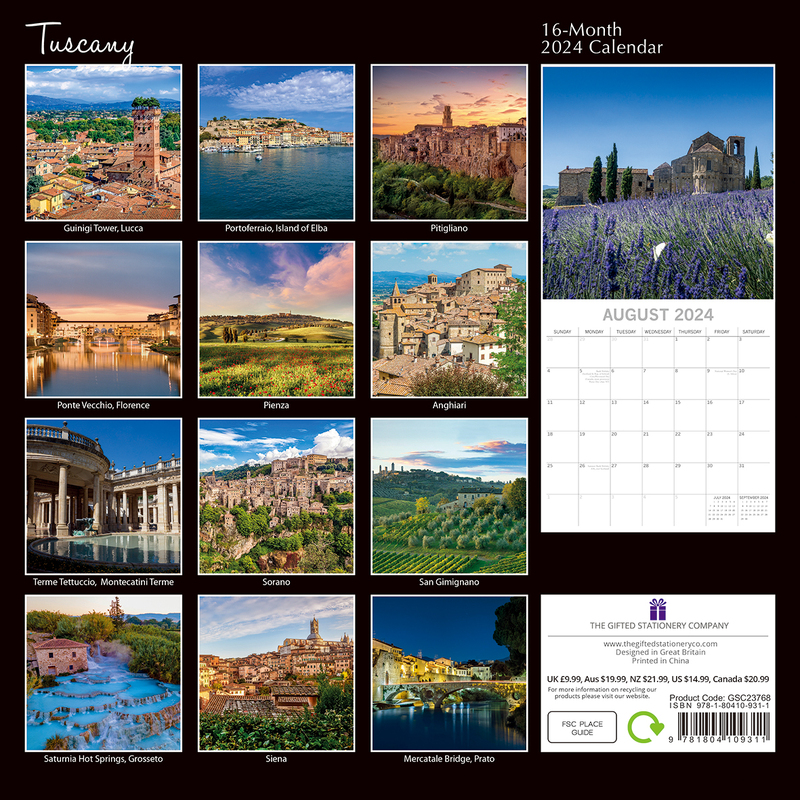 Tuscany - 2024 Square Wall Calendar 16 Months Premium Planner Xmas New Year Gift