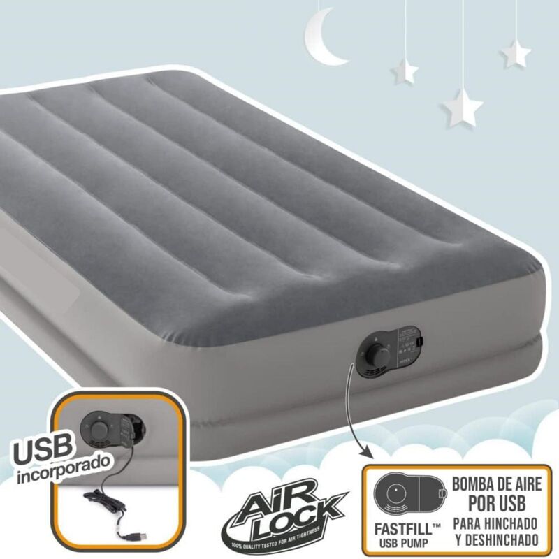 ?BUILT-IN USB ELECTRIC PUMP?Convenient and versatile to use with your phone charger, 12V USB car charger, or a portable battery; the USB pump is more energy efficient than traditional electric pumps (Approximate inflation time is 3.5 minutes)