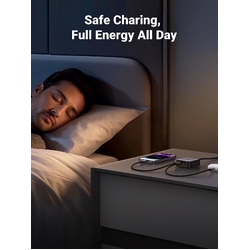 Featuring Dynamic Temperature Sensors that actively monitor temperatures and an intelligent PMW chip that adjusts power outputs to safeguard your connected devices. A UL94-V0 rating shell along with an efficient heat dissipation structure ensures safe overnight charging.
