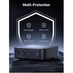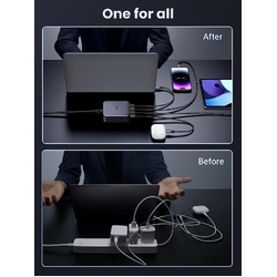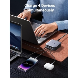 With superior GaN II tech, 3 USB-C ports and 1 USB-A port provide 100W to phones, tablets, laptops, and more! All at the same time.