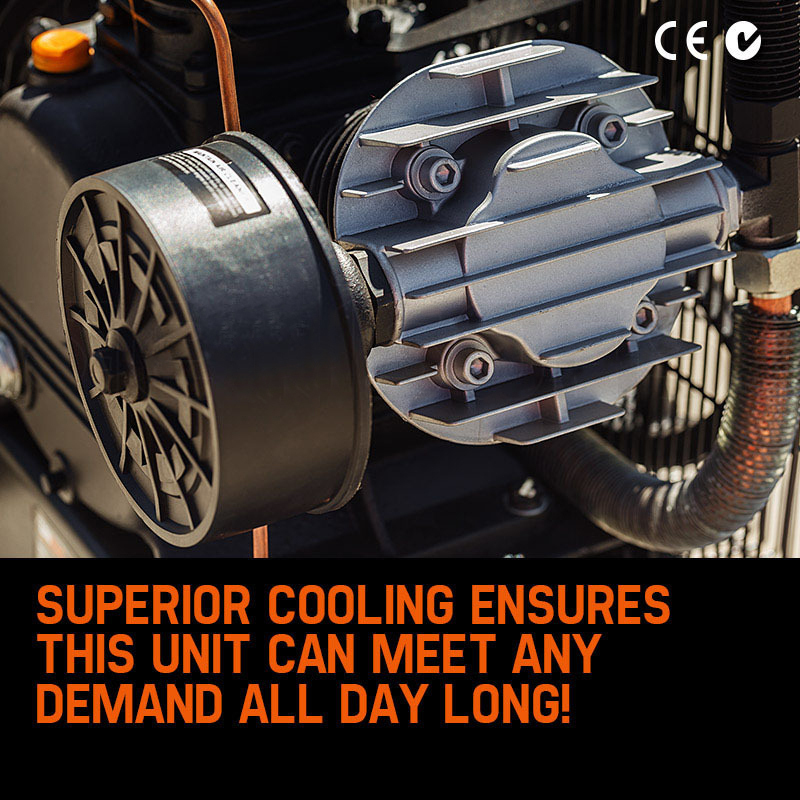 What sets Unimac apart from the rest is the huge triple 90mm Uni-GlideTM coated sleeves in a Tri-V layout with twin belt drive. When you are working on a project, you have to consider the moisture and air temperature which affects the performance of your air compressor and quality of air delivered. Unimac's patented Tri-V Triple piston with Uni-Glide™ Coated Sleeves is designed to have larger pistons operating at a much lower speed, which means lower rotations per minute directly result in lower operating temperatures. Larger pistons with lower temperature come with lesser moisture, not only prolonging the life of your air compressor, but also your valuable air tools - this is also super critical for spray painting applications for that perfect paint finish every time.