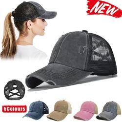 Unisex Women Ponytail Baseball Cap Messy Bun Baseball Snapback Hat Sun Sport Cap