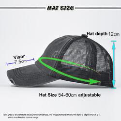 Features: Adjustable, Wide Brim, Ponytail Cap, Ripped