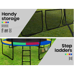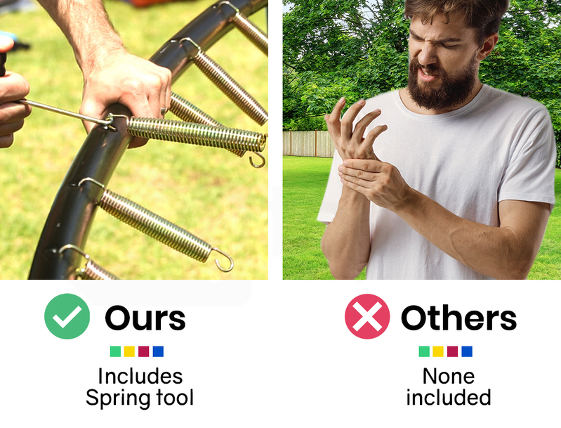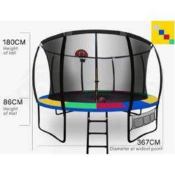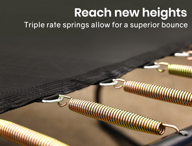 Triple-rate springs, strong rigid frame, curved safety poles, enclosure safety net, safety pads and quality mat create a perfect balance between safety and excitement! This 12ft Trampoline is perfect for general family use and larger backyards.