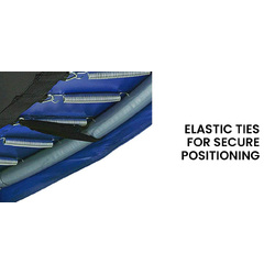 This universal design replacement padding is easily secured with elastic ties and fits over the springs of both curved pole and straight pole 12FT spring models of UP-SHOT and other brand trampolines. This high-quality edge-to-edge pad is made from waterproof UV resistant PVC material and high-density anti-microbial vinyl to provide protection from the elements. The thick and comfortable encased EVA foam allows for countless hours of comfortable cushioned fun!