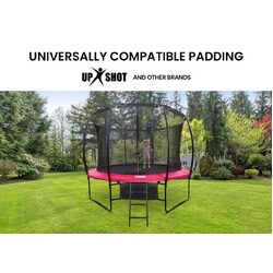 This universal design replacement padding is easily secured with elastic ties and fits over the springs of both curved pole and straight pole 16FT spring models of UP-SHOT and other brand trampolines. This high-quality edge-to-edge pad is made from waterproof UV resistant PVC material and high-density anti-microbial vinyl to provide protection from the elements. The thick and comfortable encased EVA foam allows for countless hours of comfortable cushioned fun!