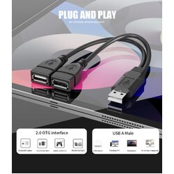 just plug and play , easy to use,This dual usb splitter allows for power to be taken from 2 USB ports, such as a PC, external hard drive, intermittent ,keyboard, audio The USB Y splitter cable is commonly used in USB 2.0 device,