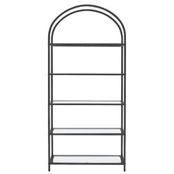 - A UNIQUE STAGE: Our shelf offers good presentation surfaces. The arched design, 5 glass shelves and a frame let your treasures shine