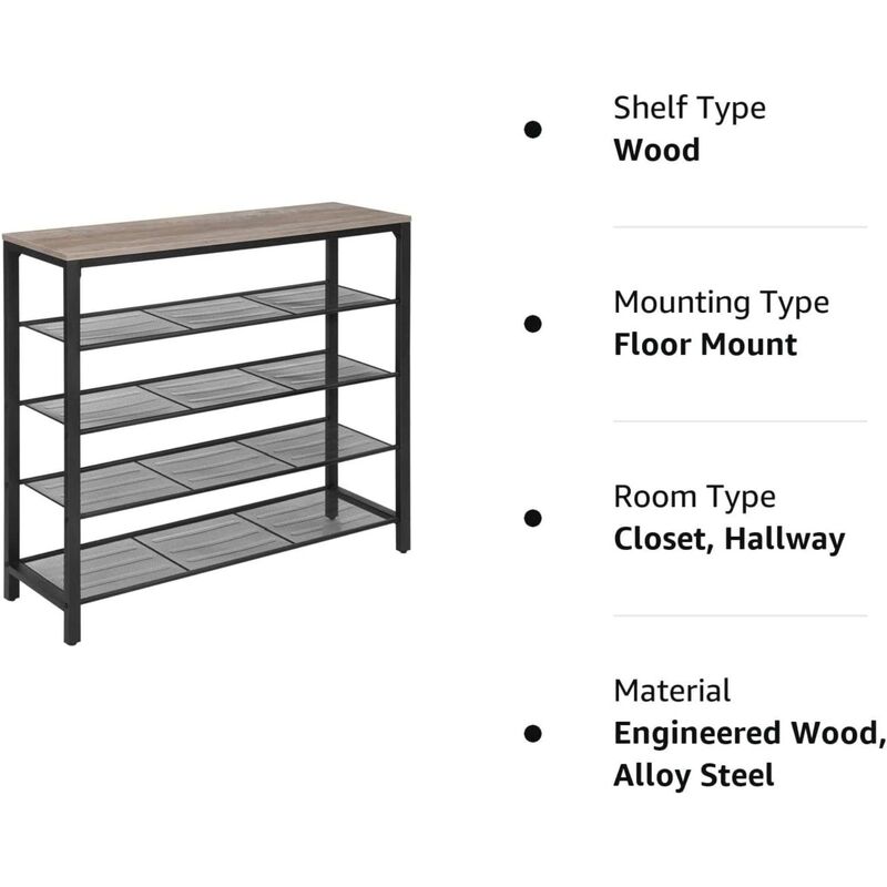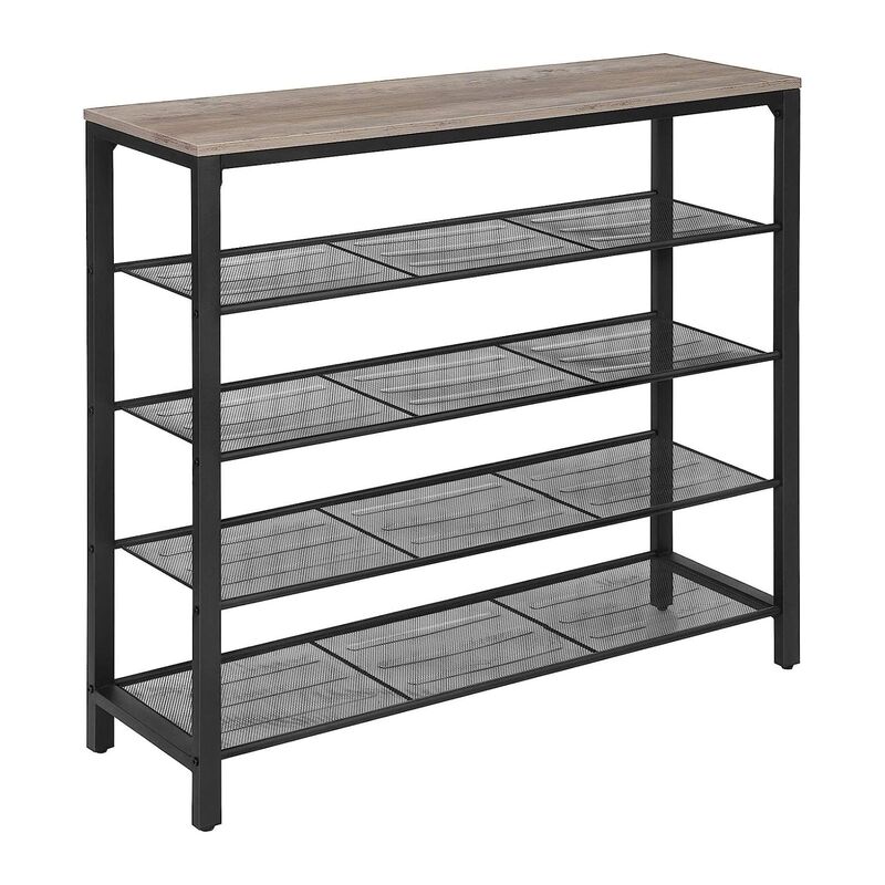 VASAGLE INDESTIC Shoe Rack Organizer with 4 Mesh Shelves Industrial Greige and Black