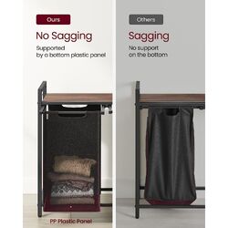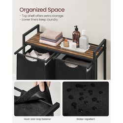 VASAGLE Laundry Basket with Shelf and Pull-Out Bags Rustic Brown and Black