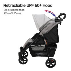 - Retractable UPF 50+ canopy blocks 99% of UV-A and UV-B rays