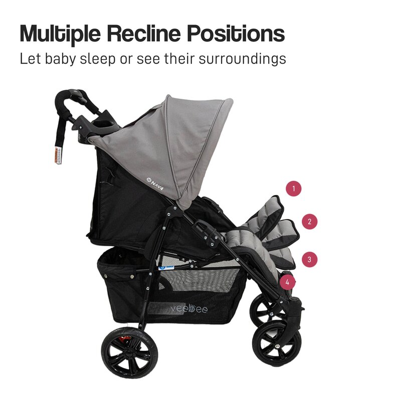 The NAV 4 is robust and sturdy, with four rugged wheels for unmatched stability. It has a retractable UPF 50+ canopy to block 99% of harmful UV-A and UB-B rays. The peek-a-boo window lets you check on your baby easily whether they are sleeping or sitting. Plus, the fully reclinable seat and adjustable footrest ensure that your little one stays comfy. Other features include a spacious storage basket and a removable snack tray